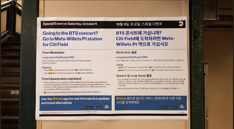 뉴욕 지하철역에 나타난 한글 안내문 뭔가 신기함 ㅋㅋ