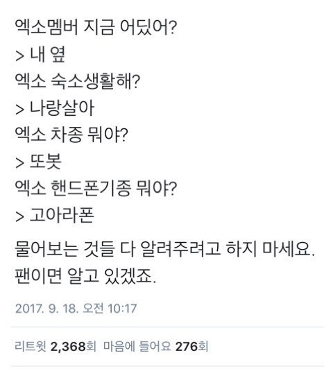 엑소에 대해서 물어보면 모범답안 들고옴