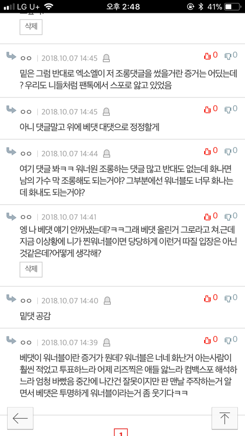 어제 있던던 일 관련 댓임 나 같으면 사과는 안하더라도 쪽팔려서 가만히라도 있겠다ㅋㅋ