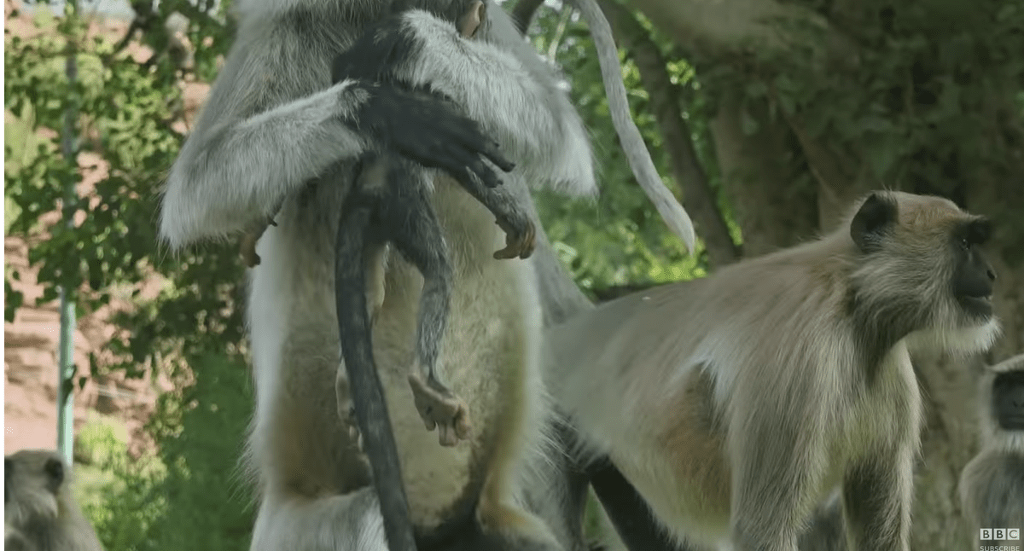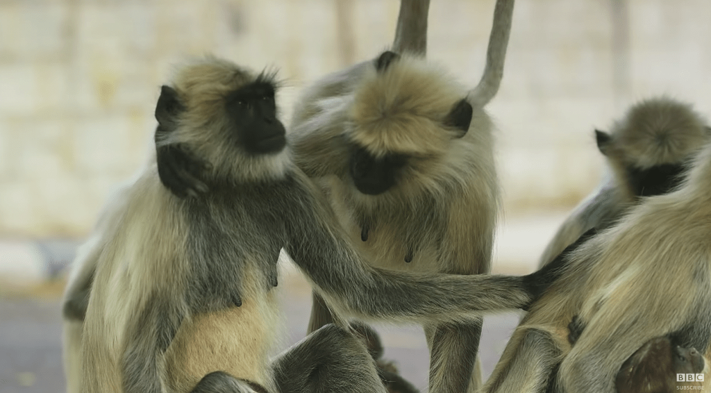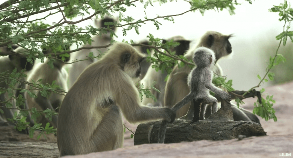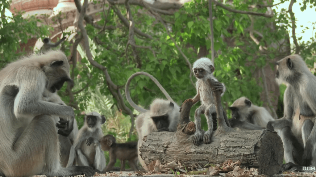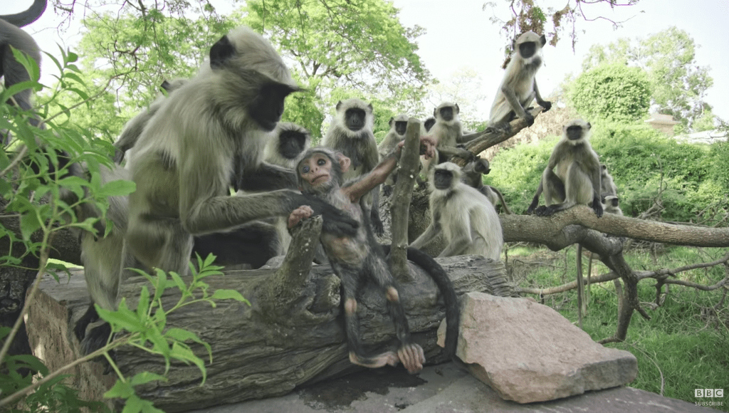로봇 원숭이를 랑구르 원숭이 무리에 투입