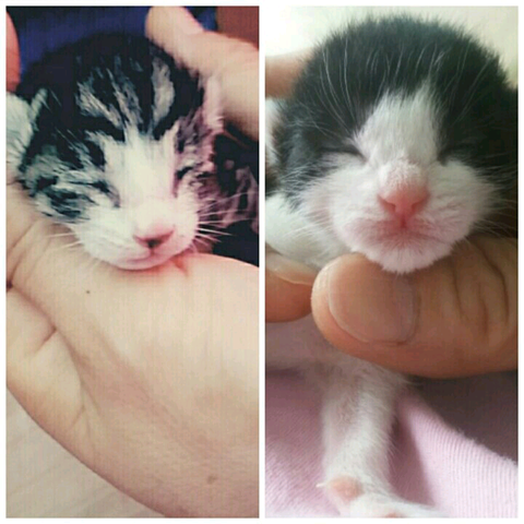 젖도 안 뗀 아가들이 거의 말라죽기 직전까지 이르러서 더 이상 놔두면 죽을 것 같다고 판단되어 직장 동료분들이 한 마리씩 맡아 기르기로 결정해 평소 동물 기르는 걸 반대하시는 어머니도 그 중에서 고양이를 한 마리 데리고 온게 시초였죠