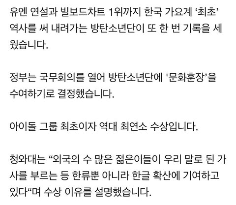 방탄소년단, 역대 최연소 문화훈장 탄다