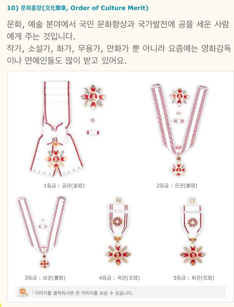 문화훈장 > 대통령상 > 국무총리상 ㅇㅇ ㅈㄴ 대단한거임