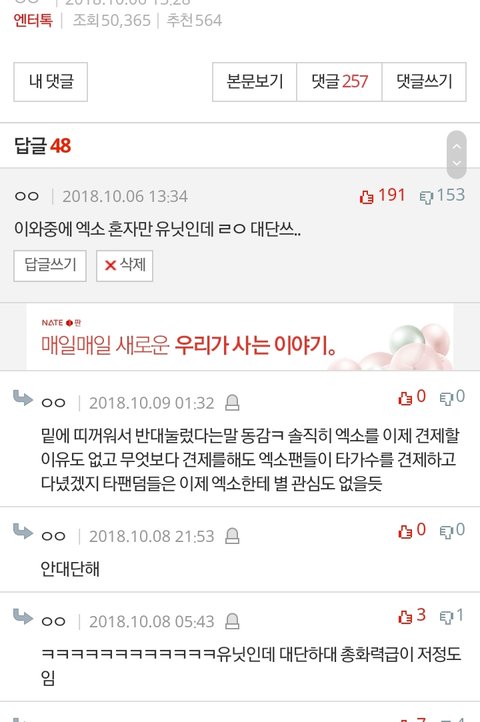 한가수 순수한 칭찬댓에 굳이 와서 굳이 반대 누르고 굳이 답댓도 달고다님ㅋㅋㅋㅋ 대체 왜이러는거임??