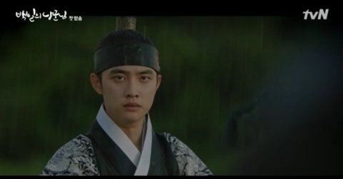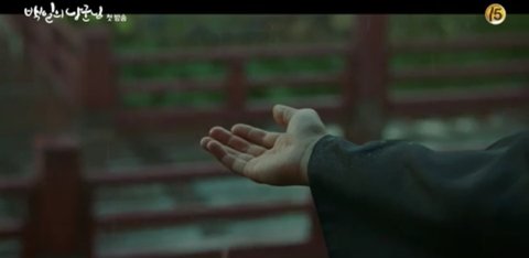 경수 세자저하 나옴... 비가 오기 시작하고 경수가 손을 내밀고 비오는 것을 본 다음에