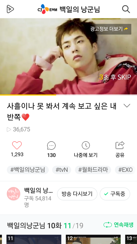 백낭 네캐에서 보고있는데 엑소나와서 놀람.. 너튭에서만 봤는데