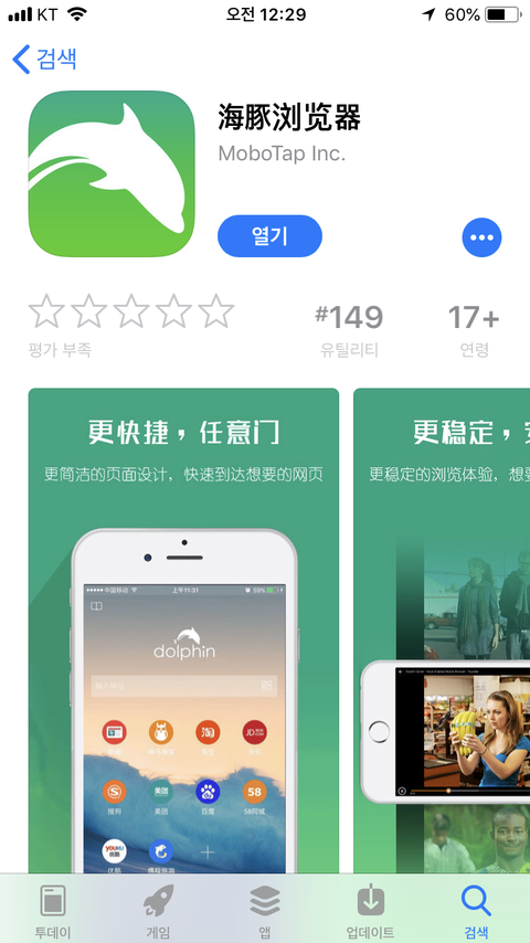 1.앱스토어에서 Dolphin치고 이거 깐다. 실행한다.
