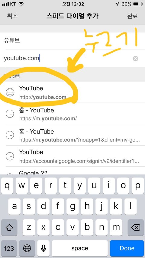2. 저 + 버튼 누르고 youtube 실행.