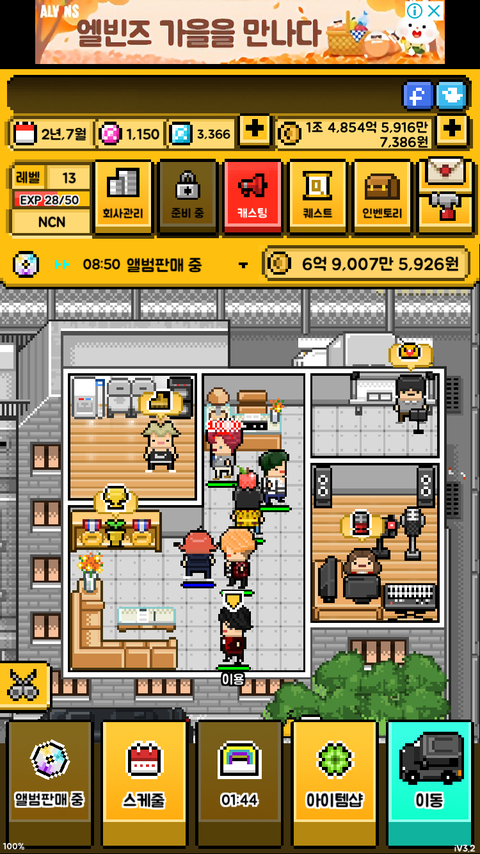 아맞다 꿀팁하나 주자면 나는 운좋게 광고보기로 ss 뽑아서 걔만 조카키우고 팬 규모 커지게 한다음에 점점 콘서트 규모를 늘려나가다가 한 베트남?인도네시아콘 쯤에서 키운 1명만 콘서트 보내서 수익비율 0:10으로 돌리고 돈 개벌고 열정 떨어지면 알약먹이면 됨ㅋㅋㅋㅋㅋ