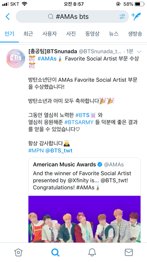 상받앗다!!!! 이삐들 추카해!!! 방탄 추카해!!!!!!!!