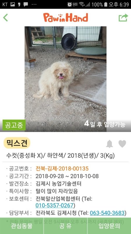 #김제보호소 #4~5개월꼬마 #뭉치털옷을입고있어요 #유기견입양 #가족을기다립니다 #살수있게도와주세요