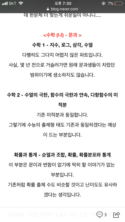 내년에 고2올라가는데 이과 갈꺼거든??우리는 문이과 통합이라하지만 말만 문이과통합이지 범위가 다르단말야ㅠㅠ 그래서 걱정이야..