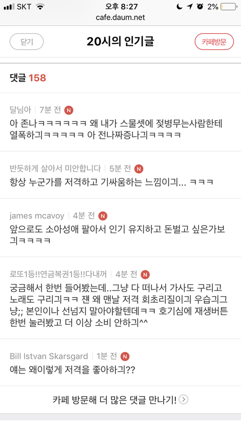 그리고 진짜 악플을 일상처럼 쓰는 데임.