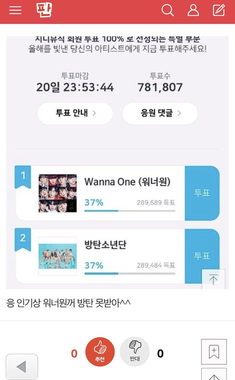 인기상 순위 여기서봐. 밑글 스루해