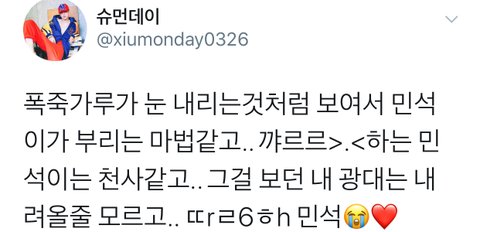 시우민 내천사 내요정 그 사랑스러운 미모에 치얼스