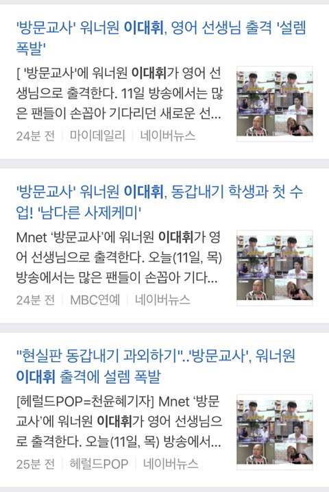 오늘 방문교사 출연예정인 이대휘 기사에 나온 내용