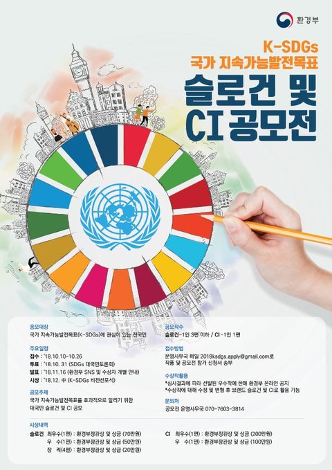 - 국가 지속가능발전목표(K-SDGs)를 효과적으로 알리기 위한 대국민 슬로건 및 CI 공모