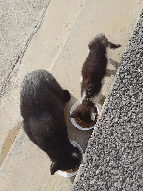 길고양이 집 만들어주려고 재료 사러 급하게 마트 다녀오는 사이에 밥들 먹고 갔네요.. 내일도 새끼랑 올까요??