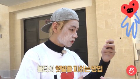 오늘자 태앱 본보비하인드 ㅠㅠ 요즘 유행한다는 인싸템 눈 카메라 필터가 따로 필요없는 썬크림바른 태태 ㅠㅠ 귀여웡 ㅠㅠ