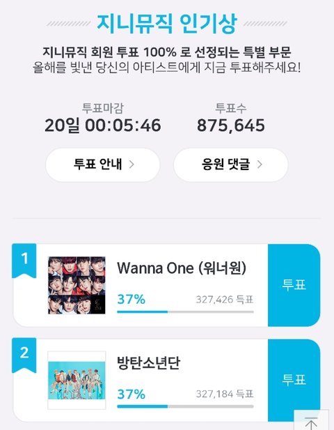 방탄 인기상 영원히 못받음 워너원 인기상 받자❤