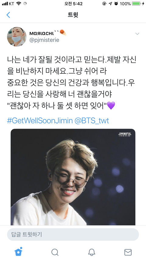 제발 지민아 잠시 쉬어간다고 생각했으면 좋겠어
