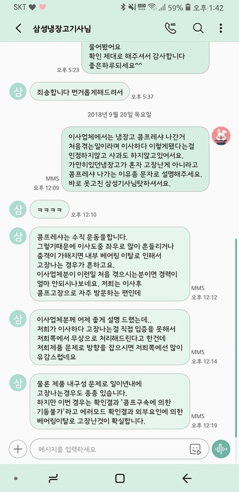 삼성기사님께서는 이사하면서 콤프가 나갔다고 자주있는 일이라며