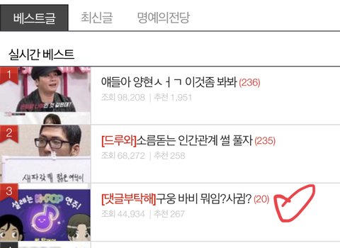+) 아무생각 없이 올렸는데 3위네 사랑해잉~^^ 참고로 나는 밥궁 민다 미인공이 최고잖어ㅋㅋ 미인공 아니면 재미없자너~ 뭐임 왜 얘네가 썸타?