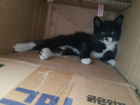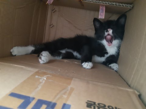 지금은 상자 안에서 안정 취하고 있어요 ㅎㅎ 귀엽긴 하네요 짜식!