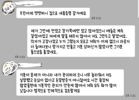 애들한테도 의자값 다시 주겠다. 그러나 내용증명보내고