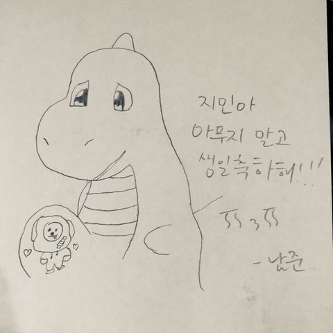아니 너무 무뜬금인데 첨에 망나뇽이 치미 임신한걸로 봤어ㅋㅋㅋ 미안해 남준아.... 저거 열심히 그렸을 거 생각하니까 너무 귀엽다