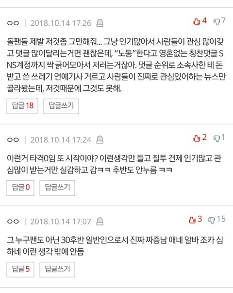 제발 너희들의 팬심으로 가장한 행동이 민폐라는것좀 알았으면 좋겠다 인기 많으면 저절로 순위는 오른다