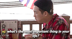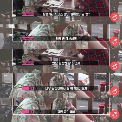 많이 도움받는 편. 진은 알엠의 음악적인 능력과 가사들을 인류를 아우르는 감성이라며 항상