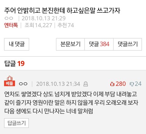 졸라 주책맞긴 한데 이 댓 보자마자 코끝 찡해짐 .... ㅜㅜ
