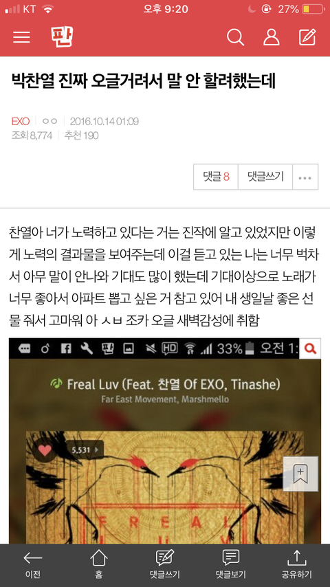 진짜 세월 빠르다 이때 폰도 우주폰 쓰고 글쓰는 것도 너무 어리다ㅋㅋㅋㅋㅋㅋㅋ괜히 부끄러운데 보고싶다 이때의 나도 엑소 많이 좋아했었네