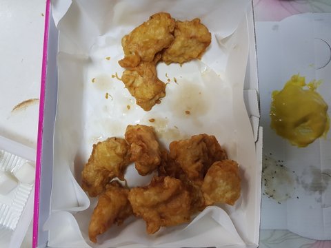 튀김옷은 군대군대 벗겨져있고 이곳저곳 눅눅해있고..