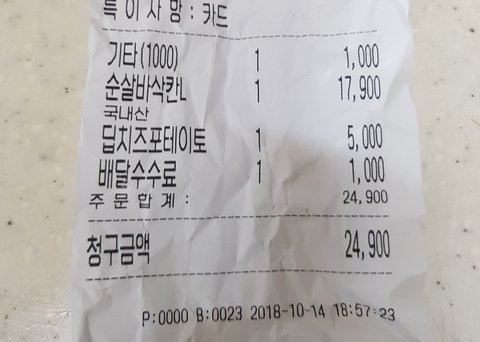 영수중에 찍혀있는건 딥치즈포테이토..