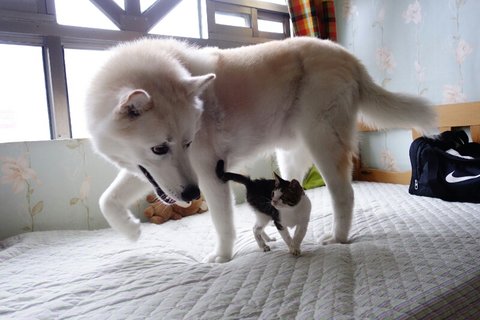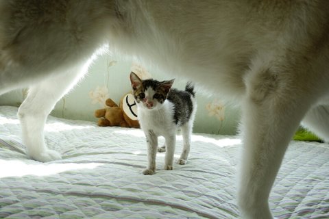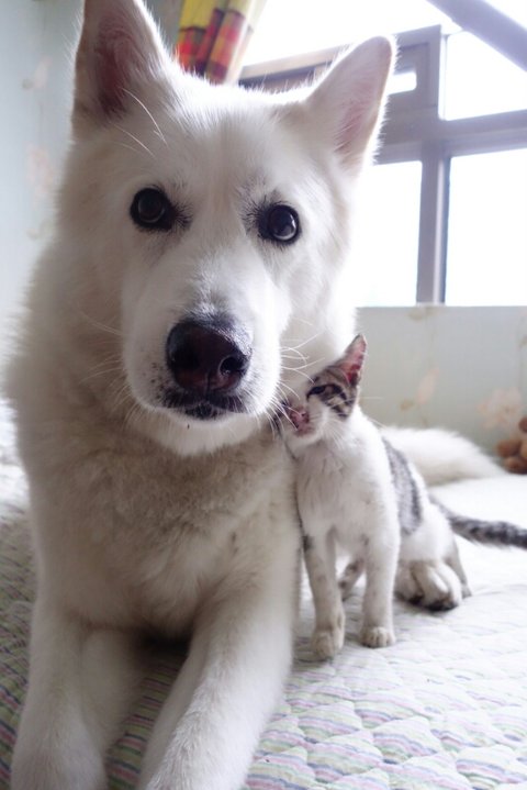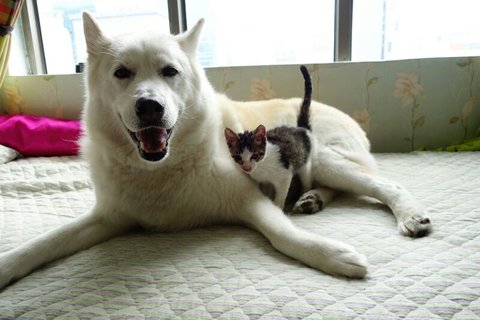 덩치 큰 심바를 무서워하기는 커녕 너무도 의지하는 새끼 고양이