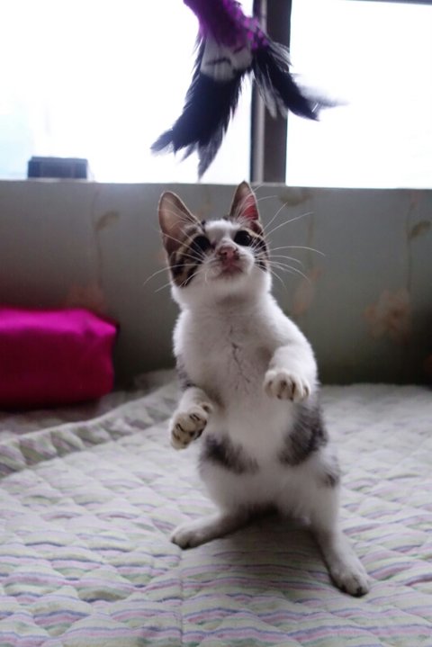 며칠만에 활력도 좋아지고 얼굴 상처도 많이 아물고 이제 저랑 장난도 치는 아기 고양이