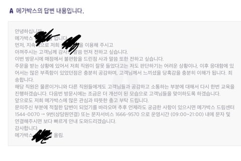 처음온 답변 그 답변보고 어이없어서 다음 접수하고 받은 답변이고 학원일때라 전화온건 몰랐어요 누가 본사에 접수하면