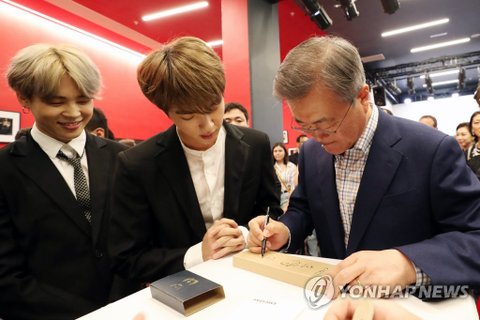 방탄 진과 정국이 저번 UN연설 때 받았던 이니 시계에 대통령님 싸인 받음. 가문의 영광일세ㅋㅋㅋㅋ