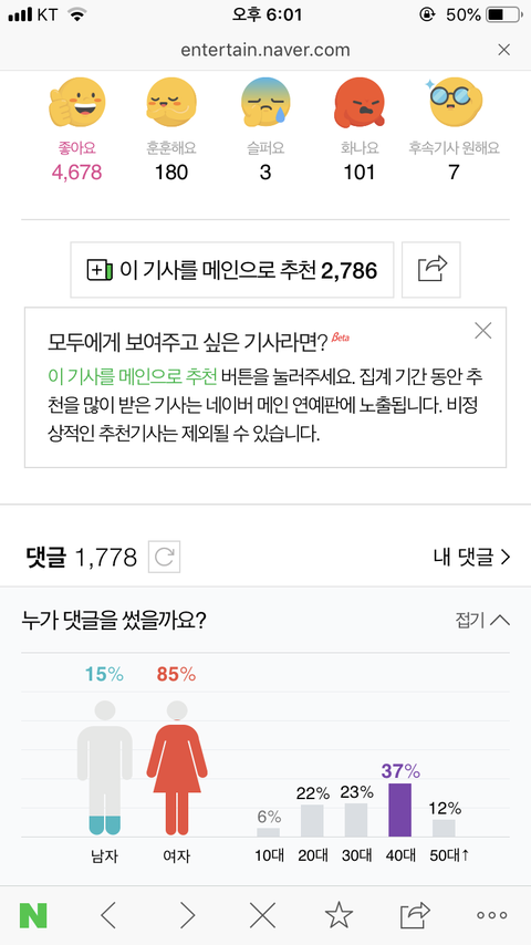 +헉스 이거 까려고 가져온 글 아니야 ㅠㅠ 그냥 네이버에 많이 본 기사 이런 거 보다가 보게 됐는데 너무 신기해서 가져와봤어 물론 10대 팬들은 다른 에센에스에 훨씬 더 많겠지!! 미안 내 말투가 오해를 부른 것 같네 그저 아이돌 관련 기사에 저렇게 다양한 연령층 댓글이 있어서 흥미로웠어... ㅎ.ㅎ,,...