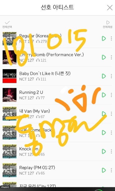 음원발매일부터 스밍한 레귤러 포함 수록곡 누적횟수