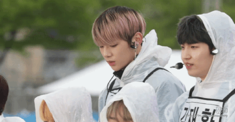 강다니엘 우비입고 진지한거 귀엽다