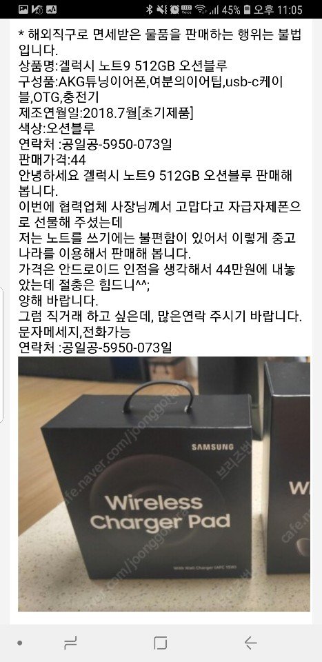 어제 중고나라에 노트9으로 글올려서 사기치고