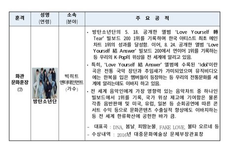 수상자 아니고 수훈자라니..게다가 멤버 개개인 이름이 올라있다니ㅠㅠ (표창은 팀별)