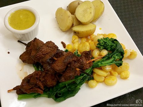 운동량이 많은 부위답게 질겨서 스테이크처럼 먹기는 힘든 부위인데 이렇게 잘라서 꼬치구이로 먹으니 색다른 맛입니다.