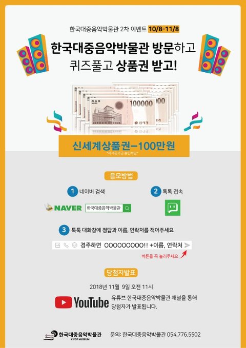 한국대중음악박물관 1차이벤트 이어 2차이벤트 시작되었습니다,
