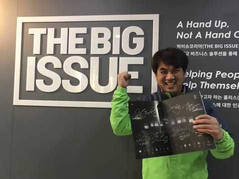 그건 바로 빅이슈코리아 잡지야 빅이슈코리아는 노숙자 분들이나 할아버지 분들이 잡지를 사서 그걸 지하철역에서 추위에 떨면서 팔고 계셔