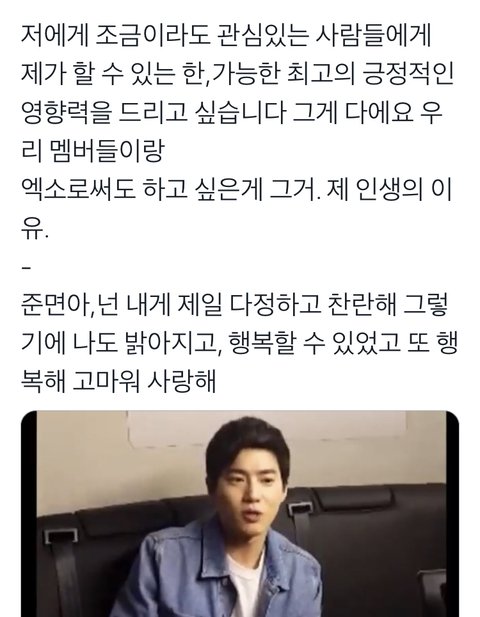 이날은 스케쥴 때문에 뮤지컬 웃는남자팀끼리 뭐 하는데 참석 못해서 울먹이면서 감정에 복받쳐서 엑소엘 너무 고맙다고 하다가 잉잉 울은 날...준면이한테는 밥 먹는 시간이 제일 아깝다고 하는데 엑소엘 보려고 차에서 밥먹어 가면서 스케쥴 이동하는 날에 저렇게 사랑하는 멤버들과 팬들과 영향력을 전달하고 싶다고 자기 인생은 이게 이유라고 해준거!