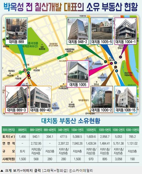 박옥성 회장이 현재 가지고 있는 부동산 중 대부분은 강남권에 위치하고 있으며,